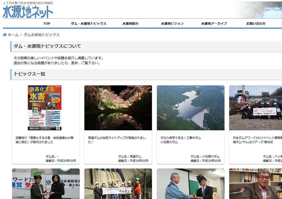 上下流をつなぐ貯水池管理の総合情報紙 ダム水源地ネットのダム・水源地トピックスです。