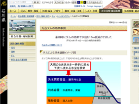 石川県が運営する九谷ダムの効果事例についてのページです。豪雨時にダムの効果で水位を1.5m低減させました。