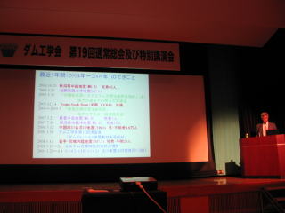 平成21年5月14日(木)都内,星陵会館において開催されました第19回ダム工学会通常総会の終了後、同会場において、第19回ダム工学会特別講演会が開催され、多数の参加者を得てご好評のうちに終了しました。