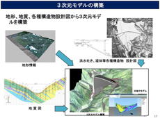 小石原川ダム建設事業においては,設計,施工,管理と各種情報を一元管理しながら,全面的なCIM を展開している。設計段階では,地形,地質,各種構造物から成る3
