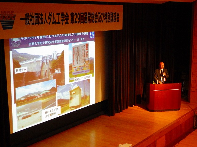 令和元年5月16日(木)の午後,星陵会館(東京都千代田区)において,第29回特別講演会が通常総会に引き続き開催されました。今回の講師は,ダム工学会理事でもある京都大学防災研究所の角教授にお願いしました。