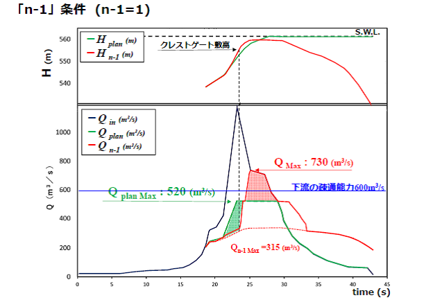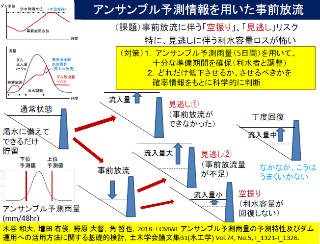 1) ダムの容量は有限:中小洪水に効かせると大洪水時に容量不足。