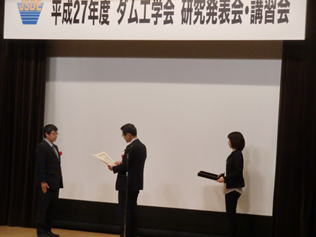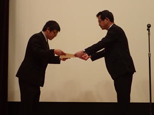 当日の研究発表に対して、優秀発表賞選考委員会が会場内で開催され、慎重な審査の結果、優秀発表賞として次の1編が選定され、優秀発表賞選考委員会 柳川委員長より賞状ならびに副賞が発表者に対して授与されました。