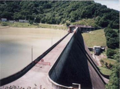 @ダム流域は空知川流域面積の約2/3を占め大きい。A国道約16km、JR線約10kmなど補償規模が大きく、事業費の約42%を占める。B貯水池内には縄文時代の文化財が埋蔵され、13万m2を10年間発掘調査。C維持流量9m3/sを利用して管理用水力発電(2,400kw)を行い、ロードヒーティングなどのダム管理に利用。D国内で初めてコンクリート運搬にパイプベルトコンベヤを使用したRCD工法を採用。また、水質保全のため発電取水は選択取水とし、貯水池内4ヶ所で曝気を行うという。