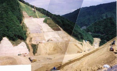 堤体基礎掘削施工状況(右岸側) 堤体基礎掘削施工状況(左岸側)