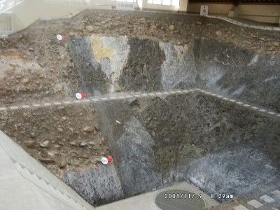 写真-5 根尾谷断層の状況 (掘削ピットの左側掘削面中央。右側が6mずり上がった)