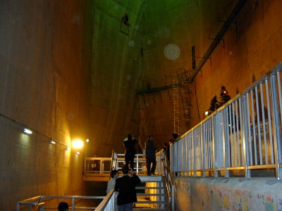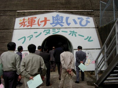 写真-8 横山ダム下流面の通朗入り口 写真-9 横山中空重力式ダム 堤内の見学