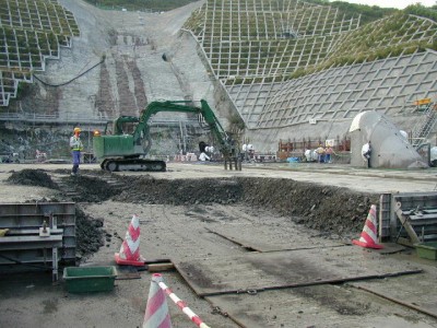ダム全景 コンクリート遮水壁の状況 ロックフィルゾーン下流面の状況