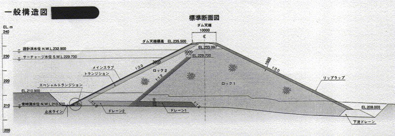 鞍部ダム標準断面図(クリックで拡大表示します)
