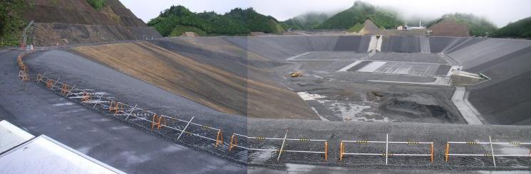下部ダム 減勢工より堤体を望む(台風への飛散対策中)