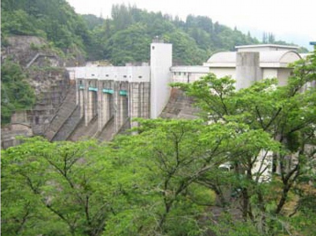 松原ダムは大分県日田市、一級河川・筑後川の本川上流部に建設された、堤高82.0m、堤頂長192.0m、堤体積294千m3の重力式コンクリートダムである。筑後川の治水と福岡市を始めとする福岡都市圏への利水、水力発電を目的とした特定多目的ダムである。