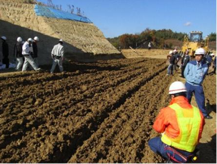 香川用水調整池 30tタンピングローラによる転圧後の盛立面
