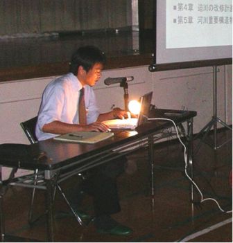 ダムサイト下流の登米市北方公民館では、宮城県土木部河川課企画調査班の大内渉技術主査より「「迫川改修のあゆみ」、宮城県登米土木事務所長沼建設班の小嶋志郎技術次長(班長)より「長沼ダム概要」についてご講演を頂き、江戸時代初期の伊達藩時代からの迫川の河川改修の歴史的背景から現在に至るまでの河川計画と長沼ダムの河川計画での位置付けについてお話いただきました。