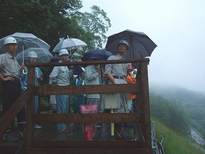 札幌を出発する9時の時点の天候は、残念ながらどしゃ降り状態であり今日の現場見学自体出来ないのでは?との思いで出発しました。しかし、夕張シューパロダムに到着した11時頃に雨は小降りとなり一安心しました。
