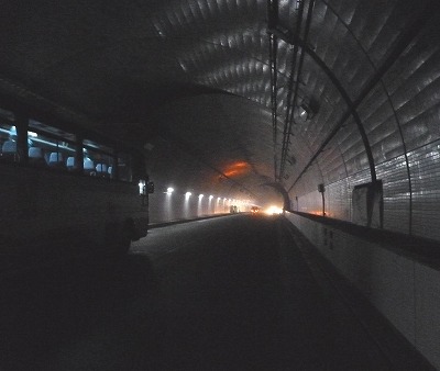 トンネル内から非常用トンネルの闇の中へ、、、