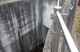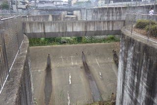 次にバスで移動し、大津放水路(三田川分水施設)を見学しました。三田川分水施設は住宅街の中にあり、分水施設の目的や概要について、滋賀県の方から説明していただきました。元々は施設の外周見学だけの予定だったのですが、希望者は立坑を見学させていただけることとなり、結局、参加者全員見学させていただきました。なかなか見ることのできない場所だけに、皆さん大変満足されている様子でした。