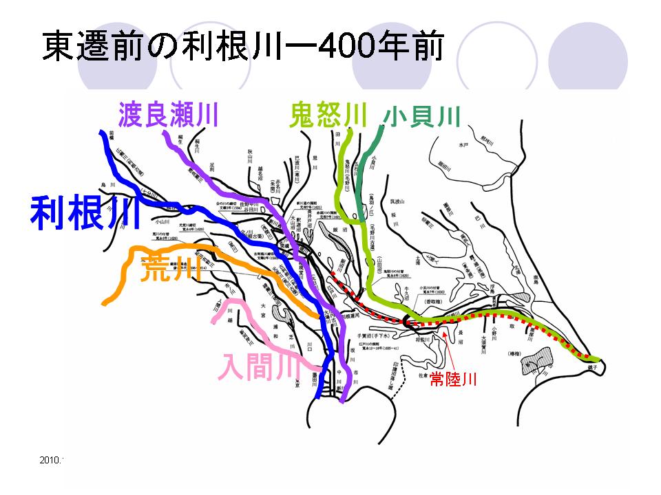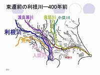 利根川の東遷ということがあります。利根川の東遷というのは、図-22に示すように、江戸時代に利根川と渡良瀬川・鬼怒川の3本の川を1本にしたのです。頭と胴体と足が全く別物をくっつけたのです。つまり、もともと1本の川としてでき上がっていませんので、借り物の足で銚子へ流れているのです。このため、下流の河道は大きな洪水を流せる実力がなく、そうすると上から来る重圧を避けるためには、ダムは極めて有効な手段となります。利根川の計画の基本となる洪水流量の2万2,000tが多いとか少ないとかで議論されていますが、とにかくダムにより上流でカットしてくれるのは大変ありがたいことなのです。そういう位置づけで利根川の治水計画ができているのに、そのような話が政府の皆さんには理解されていない。