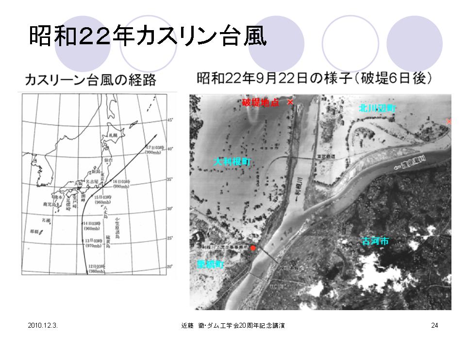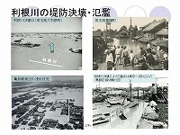 図-23は利根川改修計画の経緯、図-24,25は、カスリーン台風での被災状況。