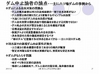 それから、複合的な理由によるもので、反対運動と需要の減少・事業者の財政難により中止となったダムが緒川ダムと小歩危ダム、それから反対運動と環境問題・漁業権等の既得権益により中止となったダムが矢作川河口堰、これらも反対運動が絡んでいたかどうかわかりませんけど、ウィキペディアではそういう整理がされております。