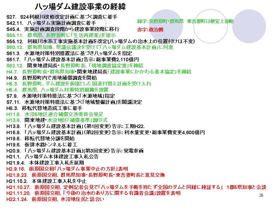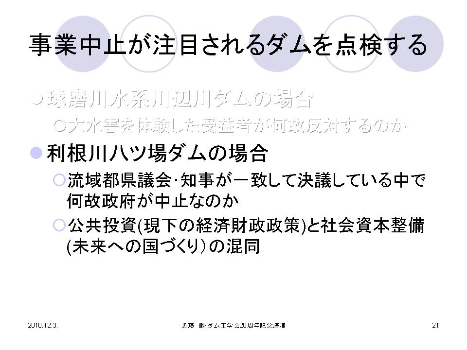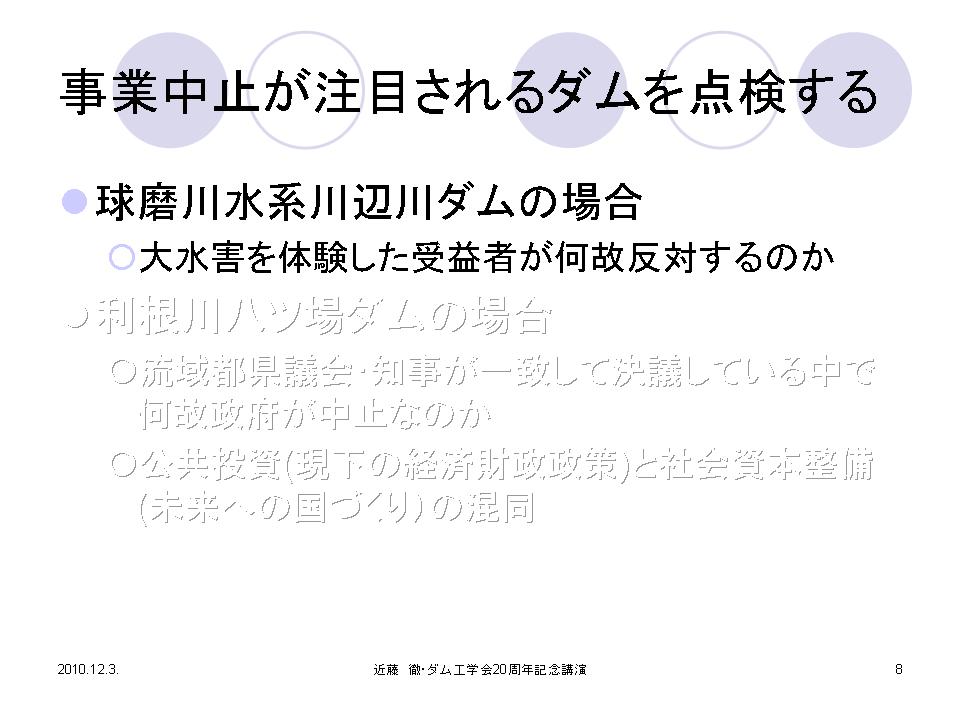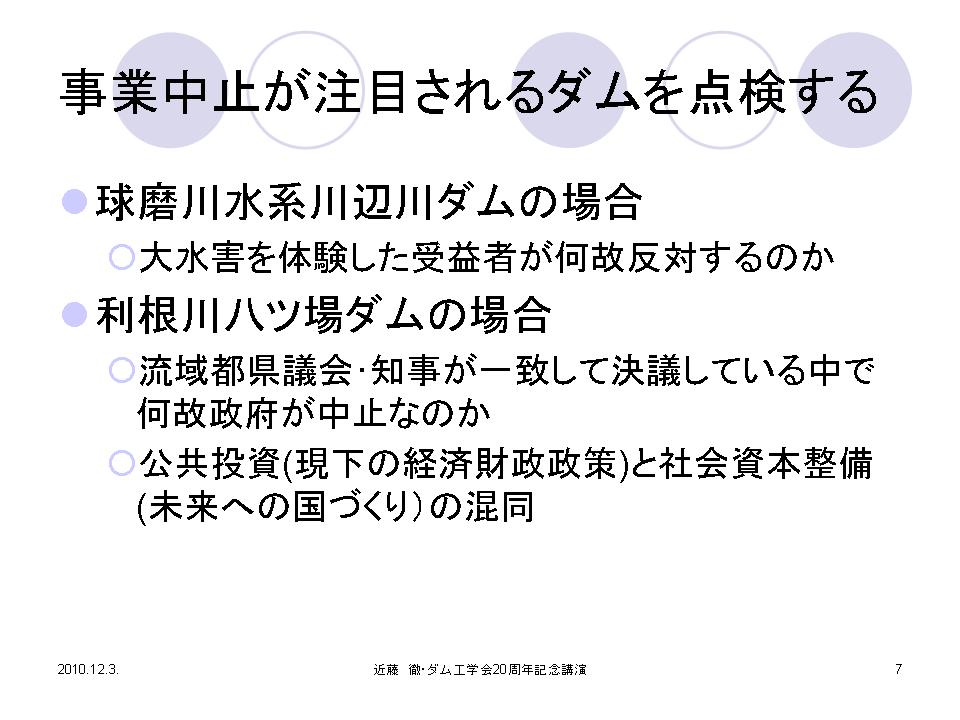 それで、これから事業中止が注目されるダム、中止とされてはいませんが、現政権に中止と言われているダムがなぜそういう事情になったのか、私なりに整理してみたいと思います。