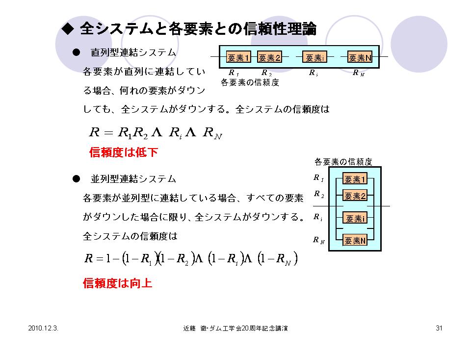 つまり、我々には安全度というのは、設計どおり、マニュアルどおり造ってあれば100%機能を発揮するという、何かそういう思いこみがあるのですけど、実は設計どおりに造っても危険は忍び込んでいる。それを積み重ねれば積み重ねるほど安全度は落ちていく。一番顕著なのは連続堤です。河川局は、連続堤は1kmの堤防も100kmの堤防も、同じ設計にしています。私がスーパー堤防を考え出したのは、このような考えに基づかないで、全国の全部の堤防をやり直すというのは大変ですから、利根川ぐらいは他の河川と違う設計にしようということで、スーパー堤防というのを提案しました。この間、事業仕分けでアウトと言われましたが。
