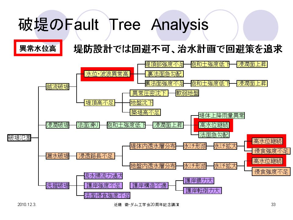 図-32は降雨分布に応じた洪水調節の考え方で説明は省かせていただきます。図-33は破堤のFault Tree Analysisです。