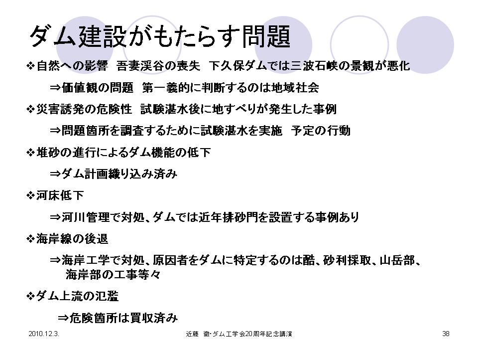 図-38も省略させてもらいます。いろいろ申し上げましたが、最後に、ダムは時間がかかるという批判があります。これは仕方ないというのでは済まないのではないかと思います。