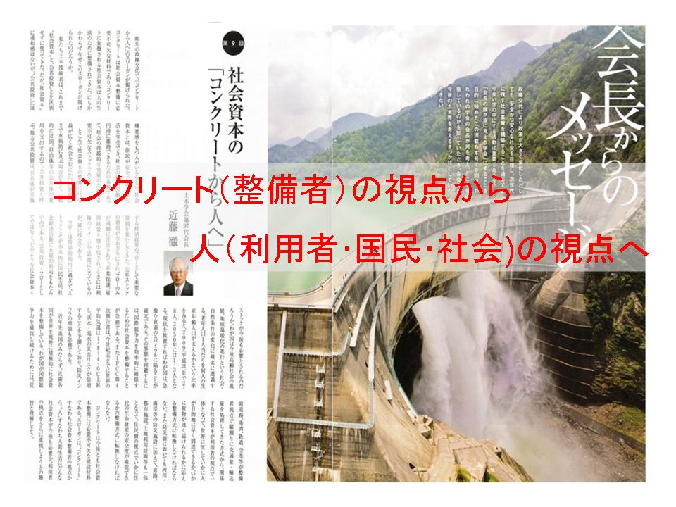 公共事業には予算がつくことは我々も決して嫌じゃありませんから、予算がつけばよかったなということでありますけど、「コンクリートから人へ」というのはまさに公共事業に予算をつけなくてもよいという象徴で、コンクリートは何のためにつくっているのかが理解されていない。土木学会も大分いろいろ意見を言ってきましたけれども、コンクリートに代表されるインフラは国民生活の安全と利便性の向上に資するもので、国民社会の資産を創出するもので、単なる経済財政政策ではないのに理解されていないではないかという意見が多かったです。私はこれまでインフラを整備する事業者の視点からのこの施設が必要という説明が強すぎて、利用者の視点から国民生活、社会活動にとってどのような施設が必要かという説明が欠けていたのではないかと発言しています。この利用者の視点から見ても、政府の方へは申しわけないけど、利根川では八ツ場ダムは絶対必要なのです。