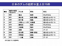 我が国の場合には、図-3に示してありますが、一番貯水量が大きいのは、徳山ダム、その後、奥只見ダム等々が続いています。ご存じのとおり、我国のダムは世界と比較しますと桁が全然違うことがわかります。最大でも6億m3ぐらいです。