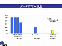 一方、日本で一番貯水量が大きな徳山ダム、これは水資源機構さんが管理されておりますけれども、ロックフィルダムとしても堤体積が大きいものであります。それでも貯水容量が約6.6億m3ぐらいです。
