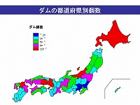 ダムの個数だけで言うと、非常に多くあるのが、例えば、北海道、新潟等々でございますけれども、逆に少ないのは九州等々です。東京や関東近くはほとんど数がない。20個以下です。(図-12参照)