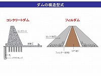 ご存じのように、今現在使われているダムの形式としては、重力式コンクリートダム、それからフィルダム、この2種類が一番多いわけでございますけれども、図-18の左側が重力式コンクリートダムで、右がフィルダム、見てもわかりますように、重力式コンクリートダムのほうがはるかに断面積として小さいもので済みます。フィルダムのほうがかなり大きな断面積が必要になります。