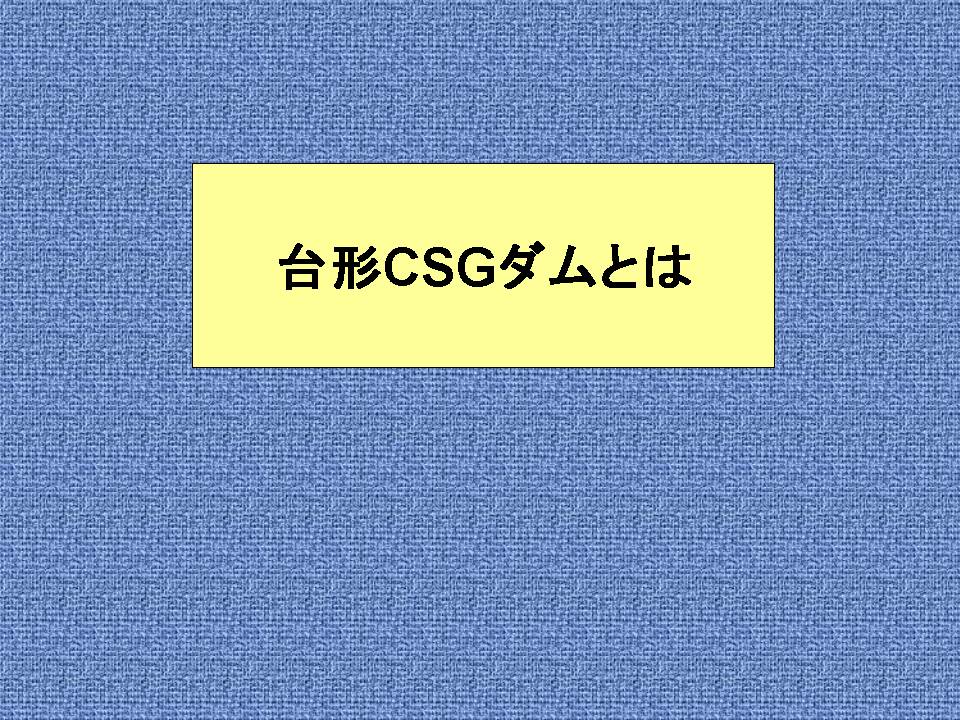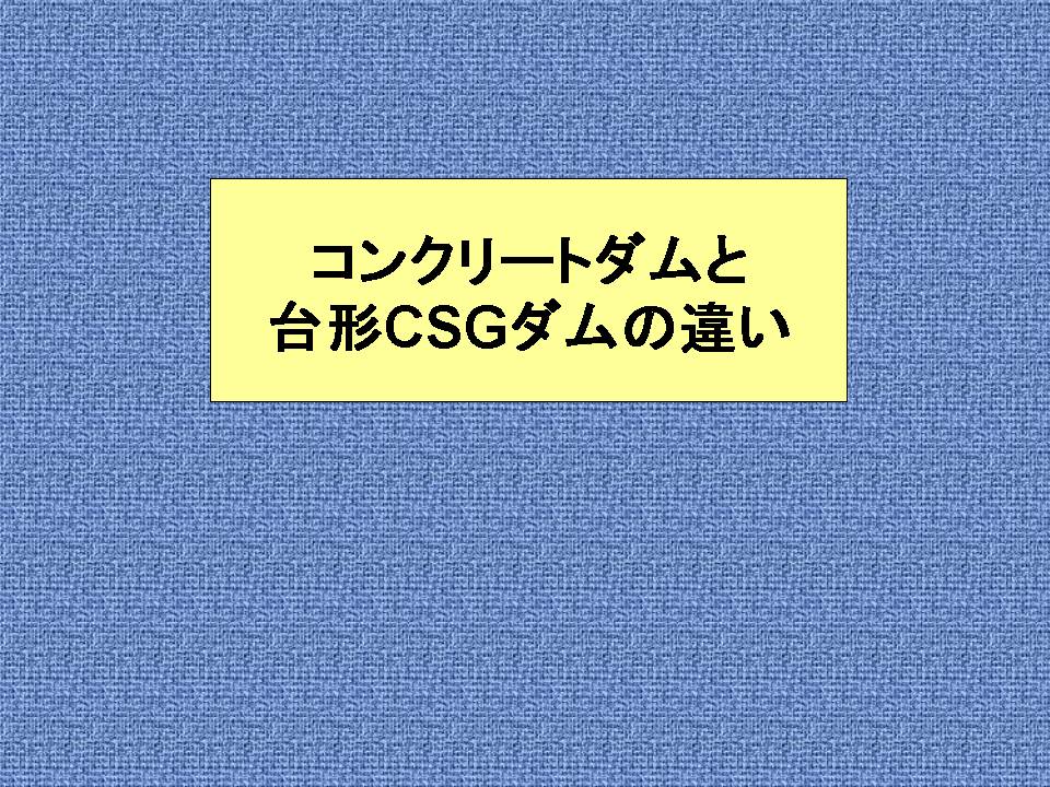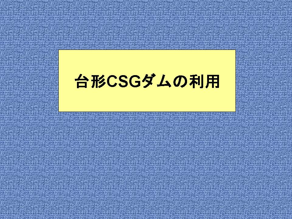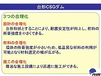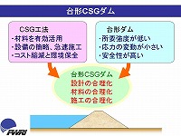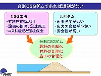 そこで、皆さん方が考えられた方法というのがCSG工法というのと台形ダムというものを組み合わせるという考え方でございます。