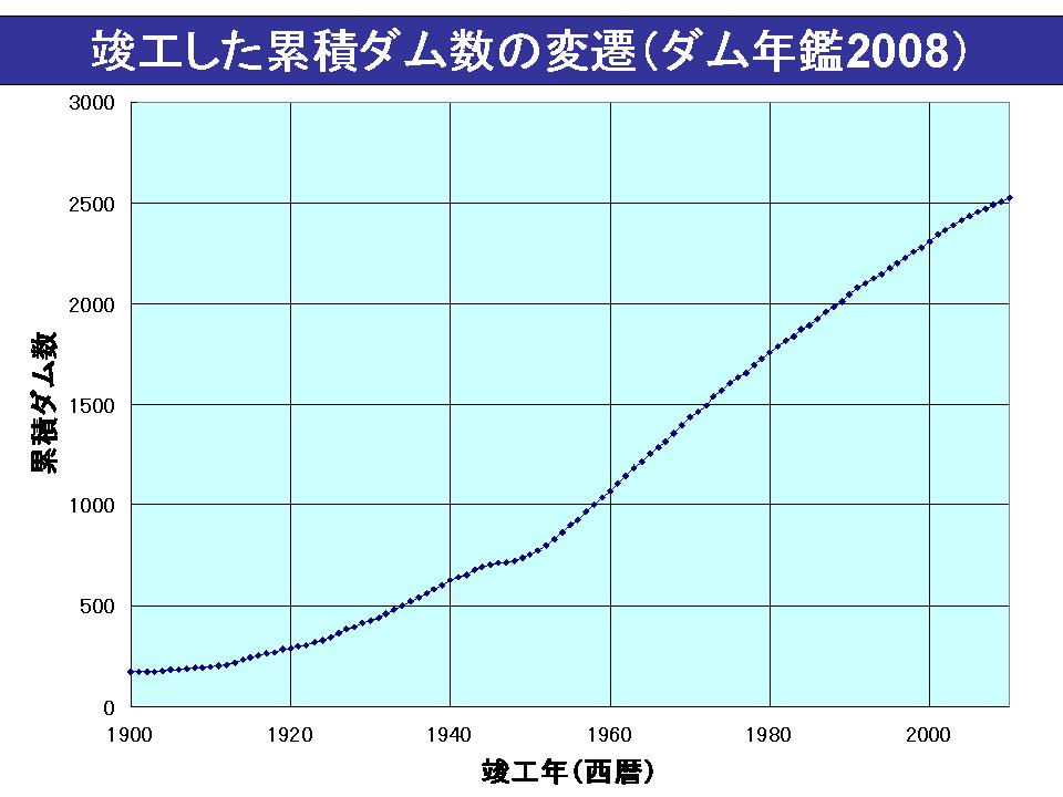 じゃ、ダムは一体どのぐらいつくられているかというと、図-7に示しますが、つい最近まで見ると、2,500個ぐらい、すごい数があります。