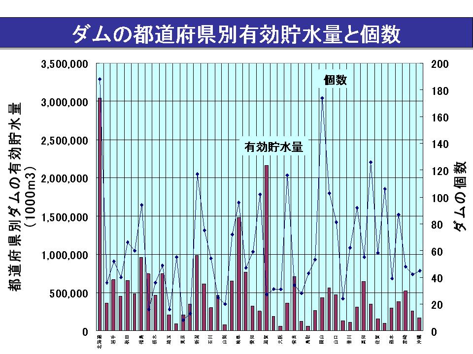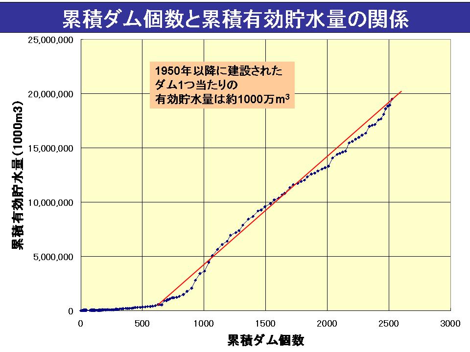 トータルの、累積の有効貯水量、有効貯水量というのは総貯水量の大体8掛けだと思っていただけばいいと思いますが、土砂その他が堆積して残った容量です。この有効貯水量は全部で200億m3ぐらいです。