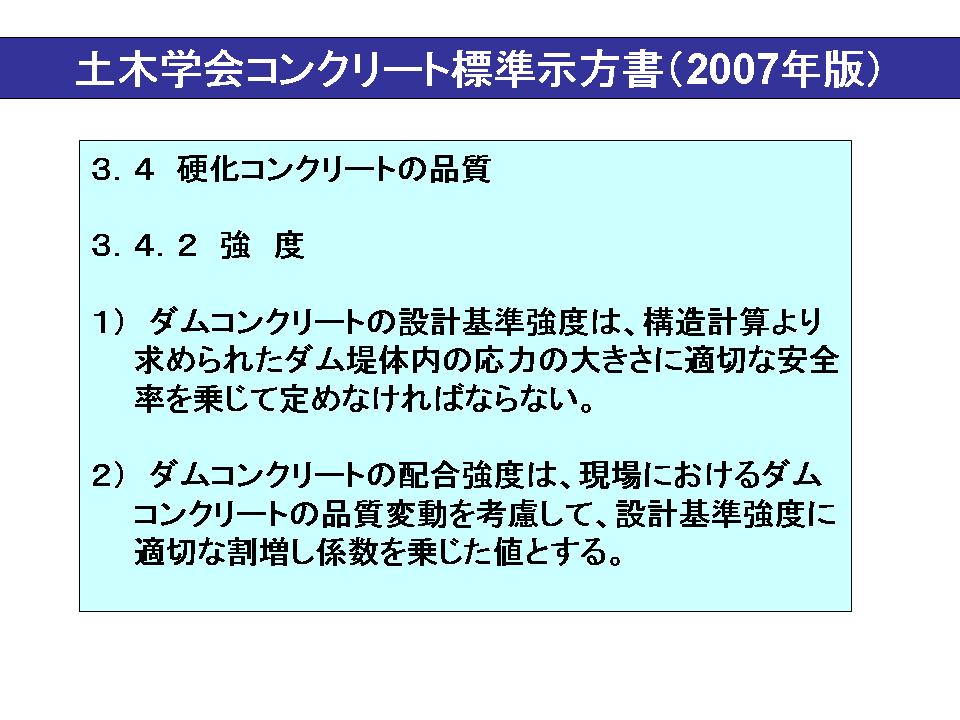この中の一番低い値を基準にすれば、ダムの設計もできる。材料としてそれ以上の強度があるだろうということであります。