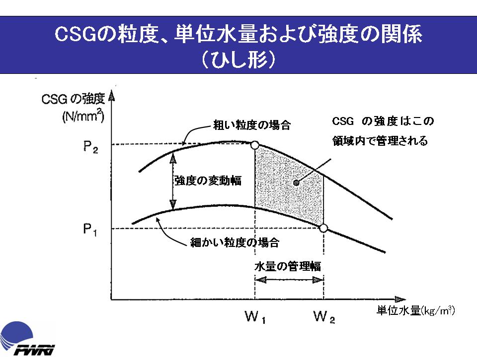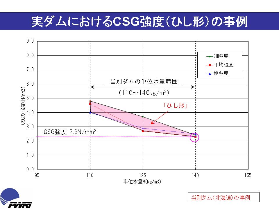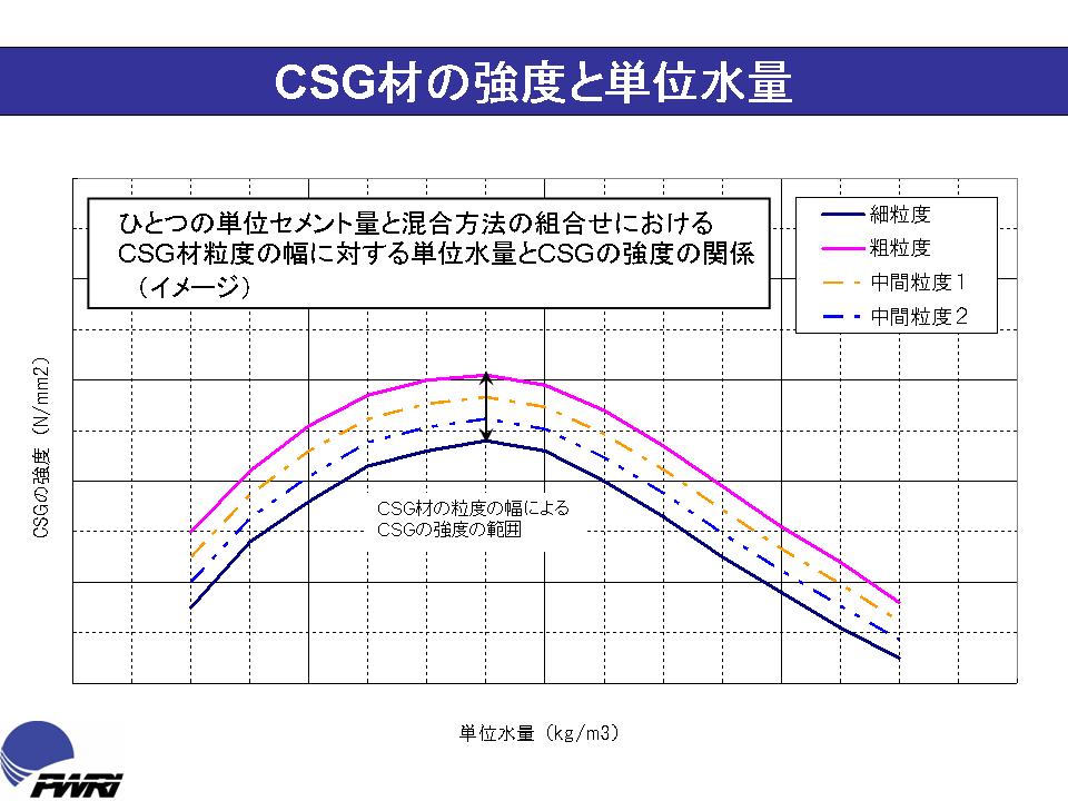 実は、CSGの水セメント比は100%を超えています。だから、逆の言い方をすると、CSG材料はコンクリートとみなせないということになります。