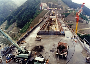 大量のコンクリートを効率的かつ経済的に施工するため日本が独自に開発したRCD工法(ローラでダムコンクリートを締め固める工法)を駆使して施工されました。