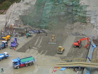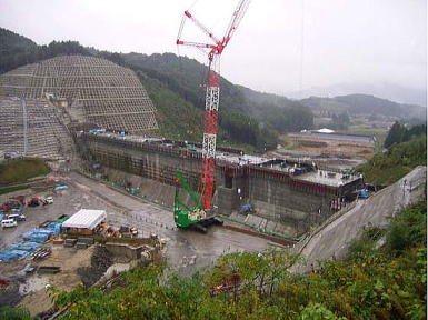 井手口川ダム堤体施工状況(右岸側見学台より望む)