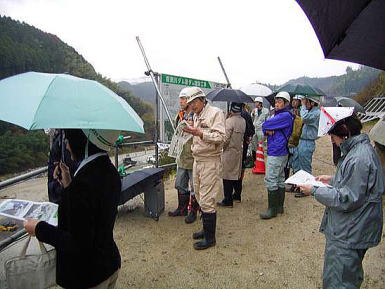 午後の部では、バスで講演会場から嘉瀬川副ダムに移動し現場見学を行い、その後、井手口川ダムまで移動し現場見学を行いました。
