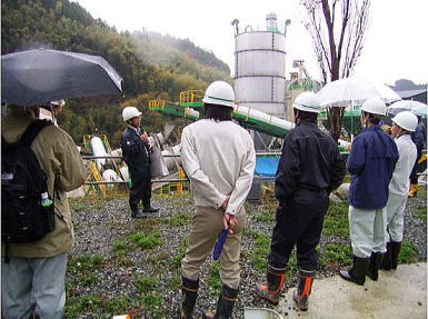 製造プラントまで移動し、九州地方整備局嘉瀬川ダム工事事務所の遠山課長より事業概要やCSG の品質管理についての説明を頂きました。