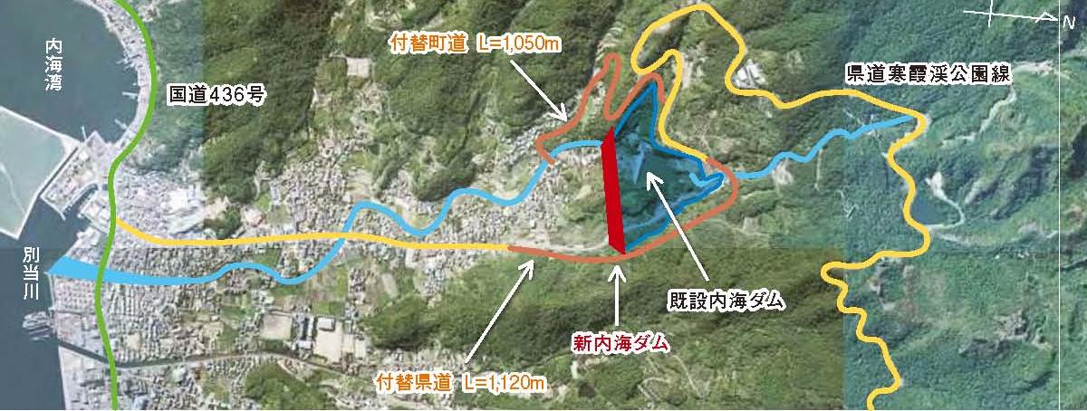 最低水位まで撤去し、新内海ダム完成後は水没する。 |