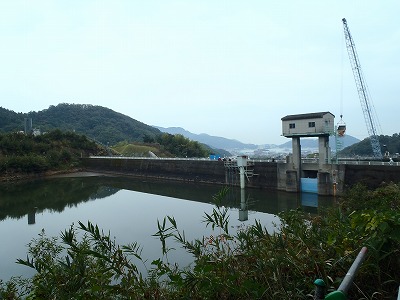 現在の内海ダムは、小豆島町(旧内海町)が昭和31年に完成させた水道専用ダムを、香川県が治水機能を併せもつ多目的ダムとして昭和34年に改築したもので、元々あった重力式コンクリートダムの堤体を嵩上げし、下流面に盛土をした後、表面に石張りのリップラップを施す「コンクリートと土石の混成堤」という、珍しい構造をしています。