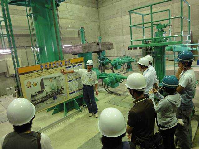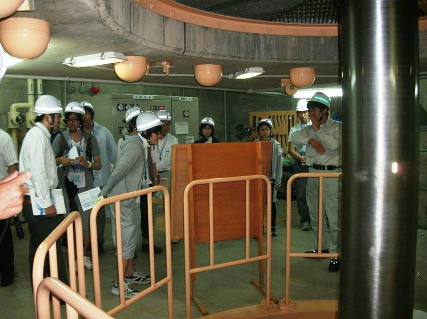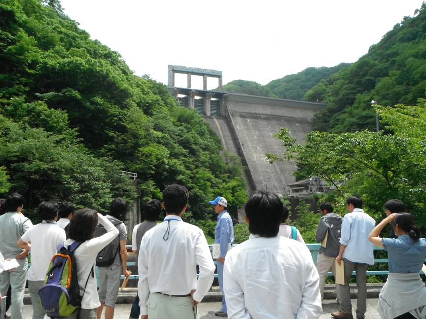 当日は途中からあいにくの雨となりましたが、ダムの堤体、ゲート、監査廊、発電施設、ポンプなどいろいろな施設を見せていただきました。参加された学生・若手技術者の方々からは、活発な意見や質問等があり、また、参加者へのアンケートでも多くの方が満足したとの結果で、大変有意義な見学会となりました。