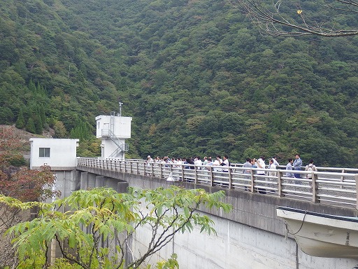 写真6 大河内発電所 長谷ダム天端からの見学状況