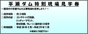 このたび、初めて「平瀬ダム特別現場見学券」の使用がありましたので報告いたします。
