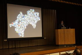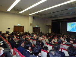 講演では、四国ダムマイスターの森部様、中国地方整備局の清水様、清水建設(株)の平塚様の3名に、ダムに関する意見や情報について、ご自身の体験や経験を踏まえてお話し頂きました。講演時間は一人20分と短い設定ですが、普段聞くことのできない専門的な話が多く、参加者の中には、終始メモを取りながら、相槌を打っていらっしゃる方もいました。