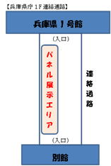 パネルはダムに興味のある方だけでなく、より多くの方の目に触れてもらうため、11月14日から18日の5日間にわたり、兵庫県庁1号館と別館をつなぐ連絡通路に展示しました。この連絡通路は兵庫県庁を訪れる方が利用しており、全面ガラス張りで人目に付きやすい場所となっています。