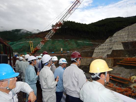 次に小石原川ダム建設工事現場に移動し、現場見学を行いました。