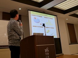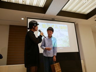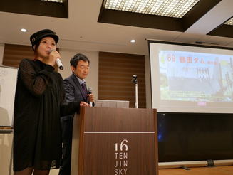 説明によると、竜門倶楽部は、ダムを活かした水源地域の自立的・持続的な活性化を図るために策定された「水源地域ビジョン」の実施メニューを実現するために、活動が開始されたとのことでした。活動内容として、植樹会や、星空観察会、ダムフェスタ、ダムウォーキング等、竜門ダムや水源地を活用した数多くのイベントについて、イベントの裏側まで包み隠さず面白おかしく紹介いただき、会場からは笑い声が湧き上がりました。